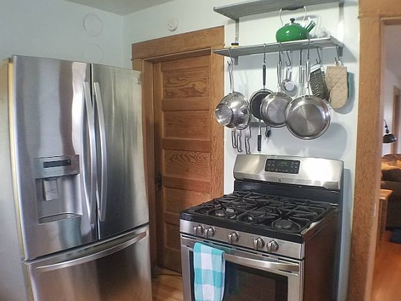 Queen bedFully fenced shared backyardFull-sized bedGas stoveLarge fridge
