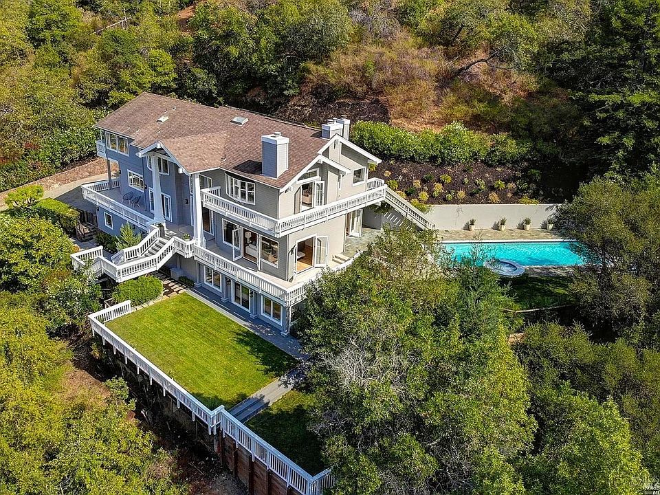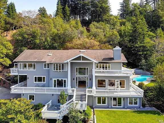 A rare opportunity to experience the best of Kent Woodlands living. This expansive six-bedroom, six-and-a-half-bath estate combines airy modern design with timeless finishes, offering a perfect balance of sophistication and comfort. Soaring ceilings and generous open living spaces flow seamlessly to the outdoors, where resort-style amenities await: a sparkling pool, elevated spa, sport court, and sweeping lawns framed by mature landscaping. Designed with versatility in mind, the home features both upper and lower-level family rooms, along with a private suite ideal for guests, au pair, or multi-generational living. Set on more than four acres, the property is situated at the end of a long, semi-private drive and enjoys serene ridge-line and valley views. Indoor/outdoor entertaining is effortless, with patios and gathering spaces that make the most of Marin's climate. Additional highlights include a three-car garage with additional parking space on the driveway landing, updated custom finishes, and close proximity to Kent Woodlands' prized hiking and biking trails. Located in the award-winning Bacich School District, this is a home that truly elevates everyday living.