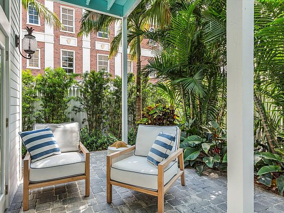 Located in the coveted gated community of Truman Annex, this impeccably styled 2-bedroom, 2.5-bath single family home blends refined coastal elegance with effortless Old Town living, just steps from Duval Street and the Truman Waterfront. A private entrance opens to a turnkey interior highlighted by Serena & Lily accents and an airy open floor plan. The chef's kitchen boasts Bosch stainless-steel appliances, an induction range, farmhouse sink, and a waterfall-edge peninsula with bar seating. Flowing seamlessly from the kitchen, the dining and living areas offer striking furnishings, a large wall-mounted TV, and ample space for entertaining. A convenient first floor powder room completes the main level. Two sets of French doors lead to a fully fenced patio designed for al-fresco dining and relaxation. There is a small front and side yard, perfect for growing flowers, herbs or whatever makes your green thumb happy. Both upstairs bedrooms feature king beds and serene finishes. The primary suite opens through French doors to a covered balcony to capture the island breeze, while the spa-style ensuite offers dual sinks, waterfall faucets, and a beautifully tiled walk-in shower. The second bedroom includes generous closet space and access to a stylish hall bath with a walk-in shower.Enjoy a private paver patio with seating and a grill, or stroll over to the heated community pool with lounge chairs, shaded tables, and restrooms. A dedicated parking space sits just steps from the front door. Only blocks from world-class dining, shopping, and entertainment. This property is offered fully furnished, holds a Truman Annex transient license, and includes future rental bookings through the end of 2025. Ideal as a full-time residence, vacation getaway, or investment property.