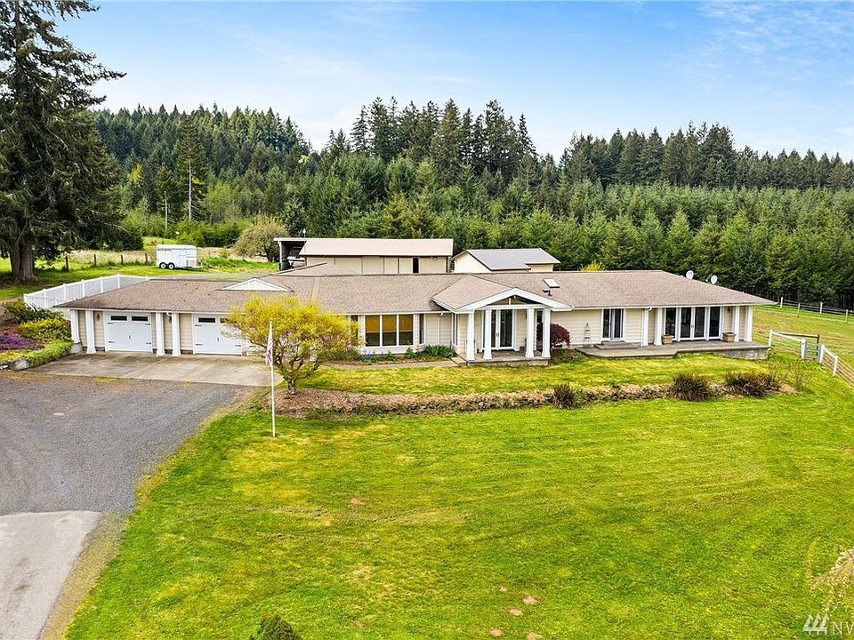 SERENE EQUESTRIAN Rambler w/Mountain View on 5 acres with 3 car Garage, Shop & Outbuildings. 170' X 72' Covered & Lighted Arena with RV hookup. 3193 sq. ft 3 bed, 2 bathrooms, granite counter tops, bamboo flooring, a gourmet kitchen with SS appliances, skylights & dining room. 1 bedroom ADU complete with kitchen, full bath & heat pump 2 Stall barn w/tack room, hot & cold water, 24X12 Run in, 5 fenced paddocks. FULL RV PAD & HOOKUP with own utilities. Possibilities are endless here!