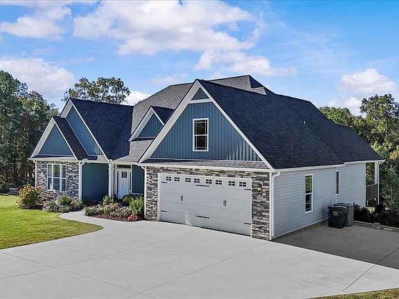 Craftsman-style home built by a local builder in 2020, located in the Copperleaf subdivision of Inman/Campobello. This 1.2-acre lot backs up to woods and offers a large backyard with a fire pit area and mature landscaping. The main level features over 2,300 sq ft with luxury vinyl plank flooring, high ceilings, and custom trim work. The master suite includes access to the covered deck and a large bath with a custom tile shower. The oversized deck spans the full width of the home with concrete patio below.. The walk-out basement offers about 1,800 sq ft finished, featuring a hand-built sauna plus ample unfinished space for storage and workshop. Over-sized parking pad beside the garage. Quality craftsmanship, functional design, and a peaceful setting make this a must see!
