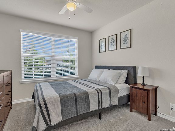 Find the charm this modernly appointed home abundantly gives. This home has been meticulously cared for and exceptionally well maintained. Seller is willing to negotiate the sale of any furniture/decor pieces with sale of the house. Conveniently located right around the corner from the new HEB as well as within minutes of Joint Base Randolph and an easy trek to anywhere in the city. The home features a large open kitchen including granite countertops and an oversized kitchen island for plenty of space to entertain or serve. There is also ample cabinet space and closets throughout the home as well as many other modern fixtures. The master bathroom is located away from the other bedrooms for extra privacy and includes a spacious walk in closet. The home is currently assumable under a VA loan with desirable interest rate. It has also been a successful rental property making it a good candidate for rental investors. Come see this gem before its too late!