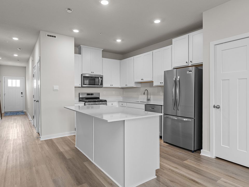 Inside, you'll love the bright, open floor plan with luxury vinyl plank flooring, plush carpet in the family room and bedrooms, and a chef's kitchen with a large island and stainless steel appliances perfect for everyday living or entertaining.