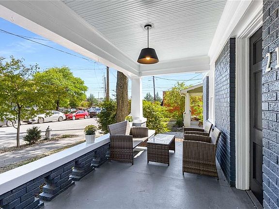 Classic brick fireplaceLush garden bedsFull front porchLarge paver patioRenovated eat-in kitchenPrivate backyard oasisPeriod details