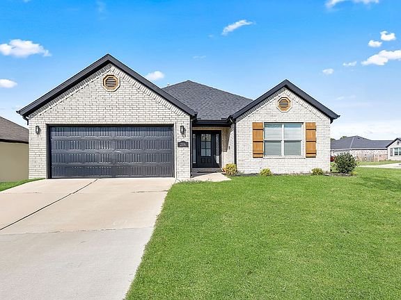 Adorable home in the Wagon Wheel Crossing Subdivision. Wonderful open concept space with seamless flow for family gatherings and functional daily living. Gas-log fireplace creates the warm ambiance to create a cozy atmosphere. Delightful eat-in kitchen overlooks main living area and is equipped with stainless steel appliances, tiled backsplash, pantry and separate laundry. Practical layout with spacious bedrooms. Beautiful primary bedroom has vaulted ceilings with wood beam accents, walk-in closet and dual sink vanity. Covered patio gives the ideal space to unwind from the day and enjoy watching the little ones play. Moments away from Farmington High School and Elementary, with convenient access to US-62. University of Arkansas is less than 15 minutes away. Must see this one today!