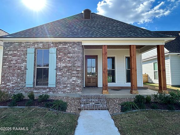Welcome to West Village in Scott!This new construction Energy Star home features the charming Gaspard French II floorplan with 3 bedrooms and 2 full bathrooms, blending thoughtful design with modern comfort.The living room offers a cozy ambiance with a ventless gas fireplace, perfect for relaxing or entertaining. The kitchen is a standout with a slide-in gas range, stainless steel appliances, 3cm granite countertops, a custom hood vent, pot drawers, trash pull and an undermount sink, making both cooking and hosting a pleasure.Tile and Vinyl Plank flooring span the home. The primary bathroom features a custom-tiled shower, while the second bathroom includes a tiled surround on the tub, offering both style and practicality.Additional highlights include cubbies in the rear entry for everyday convenience, a tankless water heater for energy efficiency, and exterior features such as up to 10 pallets of sod and front yard landscaping, all adding to the home's curb appeal.Don't miss the opportunity to own a stylish, low-maintenance home in the desirable West Village community!