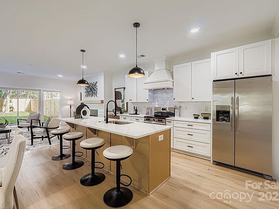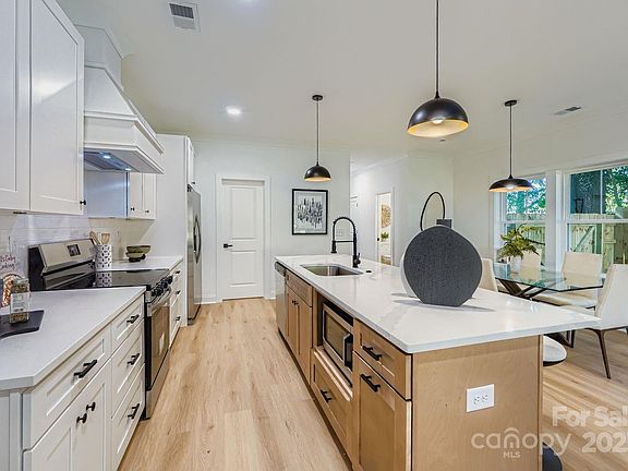 Step inside to discover a bright, open-concept layout with 9-foot ceilings and expansive windows that fill the space with natural light. The chef-inspired kitchen is a true showstopper, featuring a quartz island, custom cabinetry, and a walk-in pantry with built-in outlets—perfect for keeping your small appliances organized and out of sight. Designer touches abound, from the sleek tile backsplash and premium stainless steel appliances to the elegant lighting fixtures that set the tone for stylish entertaining.