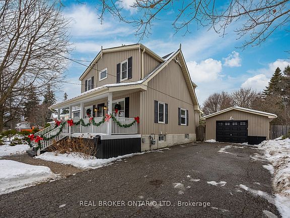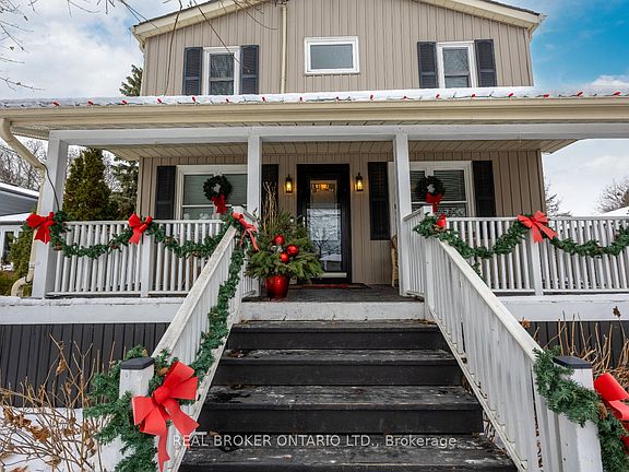Welcome to "In Town Country" living, where timeless character meets modern comfort. This charming home is brimming with personality from the moment you arrive, beginning with a spacious, covered front porch that invites you to sit back and unwind. Step inside to a thoughtfully designed mudroom and laundry area just off the front entrance, complete with a laundry sink, tiled flooring, and ample cabinetry, both practical and stylish. The kitchen boasts high end features including built-in appliances, a sleek backsplash, granite countertops, and a convenient breakfast bar, making it ideal for everyday living. The spacious dining area features elegant French doors that seamlessly flows into the open-concept living room. Relax in the family room containing a vaulted ceiling, custom built-in shelving, pot lighting, hardwood floors, and a cozy gas fireplace creating an inviting atmosphere. Large sliding glass doors lead you outdoors, offering stunning views of the expansive, private, fully fenced backyard. Surrounded by mature trees, the backyard is a true retreat, perfect for entertaining guests or relaxing on the large tiered deck or in the hot tub, while enjoying the serenity of nature and the trickling of the waterfall in the garden pond. A charming powder room showcases a rustic barn beam vanity, while the main bathroom upstairs adds a fresh, modern touch with a soaker tub with jets. You'll find four bedrooms upstairs, providing plenty of space for family, guests, or a home office. Six car parking plus garage space. This unique home offers the best of both worlds, in town living, and being close to amenities, with a country sized backyard.