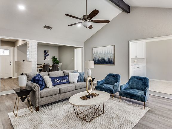 Fabulously remodeled 3 bed 2 bath home in a lovely, treed neighborhood. Updates include new soft close cabinets and vanities, quartz countertops, appliances, flooring, paint inside and out, lighting, fixtures, window coverings and more. Newer windows. Kitchen has new cabinets, backsplash, countertops and appliances. Master bedroom has lots of windows, and a sitting area big enough to make an office. Master bath with 2 Walkin closets, huge shower new vanity, lighting flooring, tile and fixtures. Laundry has a pantry and storage. Both guest rooms have walk in closets. Large backyard with a covered patio and an additional patio and sprinkler system. Buyer to verify room sizes, schools and amenities.
