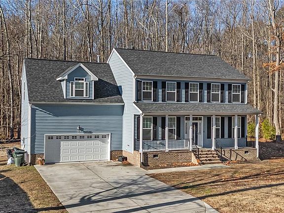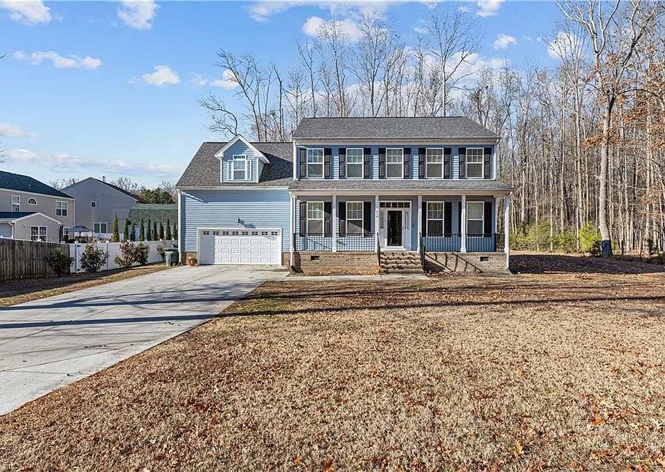 Welcome to your dream retreat! This immaculate like-new build is nestled on a sprawling 1-acre lot that backs up to picturesque woods, providing a tranquil escape right in your backyard. Step inside and be captivated by the elegant upgrades throughout. The inviting open floor plan features luxurious granite baths, premium cabinetry, and beautiful hardwood floors that flow seamlessly from room to room. The impressive vaulted ceilings create a sense of grandeur, while an abundance of natural light fills the space through strategically placed blinds and window treatments. The layout includes a versatile downstairs office, enclosed with charming French doors. Enjoy spacious bedrooms that provide ample room for relaxation and personalization, ensuring comfort for all. The finished room over the garage offers additional living space that can serve as a playroom, home gym, or guest suite—whatever suits your lifestyle!