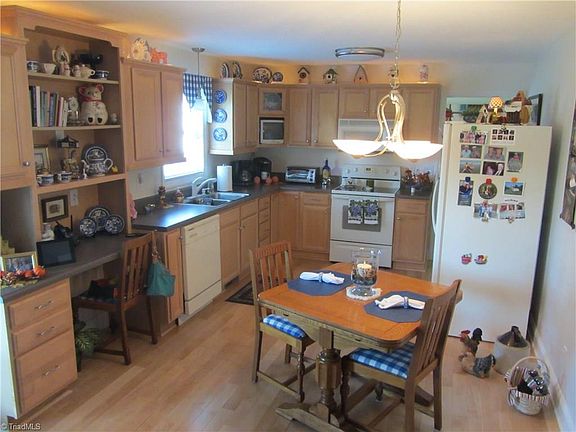 This home is in great condition. Nice 3 bedroom, 2 bath home in Mayodan. Living room with vaulted ceilings. Spacious kitchen with all appliances included and lots of cabinets. New kitchen/living room maple flooring.Large Master bedroom with walk in closet. Heatpump and central air replaced in 2012. Double garage(20 ft X 21 ft) with concrete drive. Large deck overlooking backyard. Storage building included.Convenient to parks. Only $138,500.