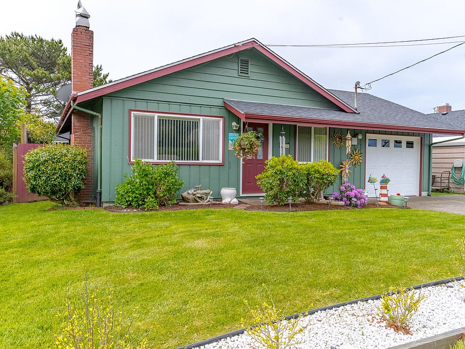 Meticulously maintained single level home has an open floor plan with hardwood floors, cozy wood burning fireplace, updated bathroom and a lovely 336 sq ft bonus living space with new luxury vinyl flooring & paint. Private fenced in backyard with raised garden beds & shed. Relax under the covered patio and enjoy the tranquil surroundings. A brand new 30 year composition roof was installed in 2023. Furnishings are negotiable. Location, location, location! Close to shopping, dining, grocery stores, schools, coffee shops and miles of sandy beach.