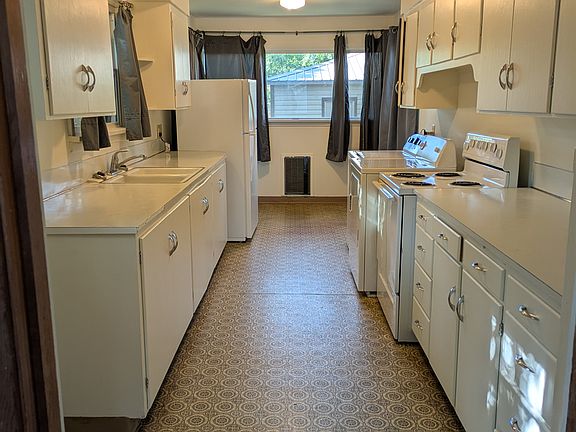 1 bed 1 bath, 706 sf, single car detached garage, plus off street parking, electric heat, stove, frig, washer/dryer included, closet to fire department & Senior Center WATER/SEWER/LANDSCAPING PAID, 1 CAT considered with $500 additional security