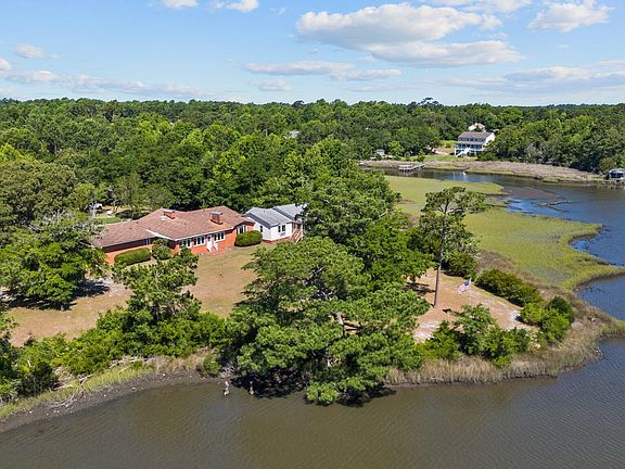 Waterfront home on 4.6 acres, this sprawling 4 bedroom, 5 bath one level home on Dix Creek with access to the ICW is one of a kind. As you enter the driveway, you are met with an arbor of trees leading to an open area where the home sits that enjoys water views and access. Original home is a traditional brick ranch with open foyer to the main living area, formal dining room, office, kitchen with breakfast nook, full bath, laundry room, sunroom, and primary bedroom with on suite bath. Hallway to the left of the front entry leads to 3 additional bedrooms and a 3rd full bath, passing through the last bedroom, a hall leads to an in-law suite addition opening up to a great room with living/kitchen/dining, a 2nd laundry room, 4th bath. Off of the main living area, a large screened in porch overlooking Dix Creek extends living outside to enjoy the breeze coming down the waterway from the ICW. a 5th bedroom with on-suite bath is at the other end of the great room, overlooking the water. going back over to the main house, a walk-in pantry, large workshop/storage area and an oversized 2 car garage with a doorway opening ups to a greenhouse. This home has a diesel powered whole house generator with above ground tank. There's also a detached, 2 story barn with an addition on one side with plenty of shelving to store all your smaller items, and a covered carport on the other side to store any small watercraft or tractor. Although the property has plenty of trees allowing privacy, there's also plenty of open space, to enjoy or to add to this compound, or possibly to sub-divide for future development. Finally, a dock for boaters can be added along the shoreline perimeter, or you may want to renovate and update a dock the existing dock. This waterfront location and acreage is close to Swansboro Walmart, grocery stores, restaurants, dental & medical facilities, hardware stores, auto dealerships and tire/repair shops.This is a hidden gem is priced below recent appraisal value!