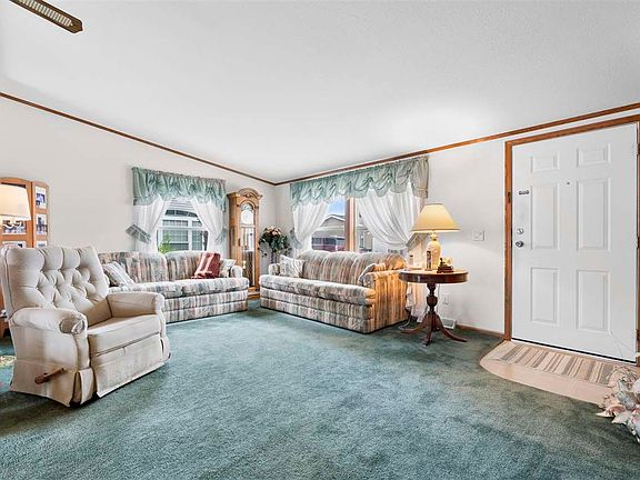 Ready for you to call "home!" Gently lived-in home with open and airy design. Kitchen features island and ample storage. Separate dining area that allows you to welcome many guests for dinner! Grand primary bedroom suite sporting french doors to separate bed and bath. Plenty of storage and walk-in closet. Additional bedroom and bath. Laundry room on main floor. Enjoy warm summer evenings on the deck or start a rousing volleyball game in the large yard. Two garage garage. Hills Bank & CBI Bank will loan on Paddock properties, but require an in-house loan with 20% down. Ask LA for more details. All adults that will be living in the home will need to apply to AM Management for community approval. Application fee of $35 per adult. The 990-year lot lease included in the sale price. This is a manufactured home on a foundation; price and HOA fee INCLUDES the 990-year land lease - which adds approximately $35K worth of value to the property. Property is sold "AS IS". Buyers may do any inspection for their information.