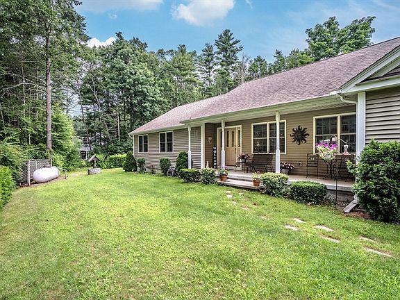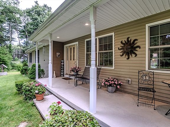 One floor living at its finest! This very well maintained, one owner home features an open living concept with all 3 bedrooms, 2 full bathrooms and laundry on one level. Kitchen features stainless steel appliances, a double oven and a built-in desk with a great center island. The dining room and living room are open with high ceilings. Head out the front door to a covered front porch where you can relax and enjoy your coffee. The slider in dining room goes to a quiet back yard patio with a gazebo (will remain) to keep you dry and cool for your BBQ. All 3 bedrooms have ceiling fans and great closet space. The primary bedroom has an extra walk-in closet with a bath attached that has extra wide double doors and a walk-in shower. Windows galore letting in all the sun. Spacious two car garage which leads you right into the mudroom. The full basement has many opportunities. Lots of space to finish off. This is country living at its best with access to the pike.This private oasis awaits you!