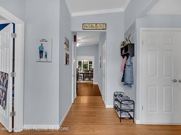 Discover this 3-bed, 2-bath home in Lincroft with much to offer! Hardwood floors adorn the dining and living rooms, welcoming you warmly. The sizable master bedroom with a private bath serves as a perfect retreat. A full basement with an office grants extra space for your needs. Enjoy added storage in the finished crawl space. Situated on 0.34 acres, it's minutes away from Red Bank's shops, eateries, theater, and easy NYC transit via GSP & Rail. The outdoor space impresses with great curb appeal, a backyard bordered by tranquil woods, patio area, fire pit, and additional storage in a large shed and garage. Close to Downtown Red Bank, this cozy yet spacious Lincroft gem is a prime location for convenient and serene living.