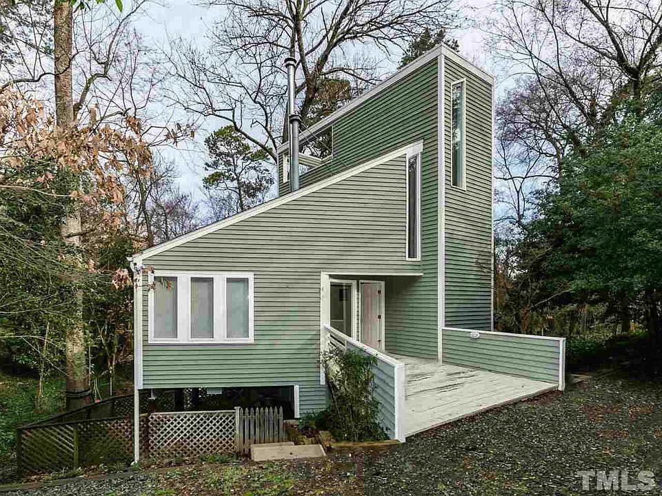 Contemporary Flare,Bright Open floor Plan!Soaring ceiling,Skylights,Many updates!H20 heater '14,Exterior Painted '15,Heat downstairs '17,Almost all casement windows replaced btwn '12-'19,Roof '07, Fresh paint - interior & decking, great privacy,wooded .45 acre lot in Rockwood,hardwood flrs,dual masters,wood burning stove in fam rm,3rd flr observation deck,walk to dinner at some of Durham's best foodie delights Q-Shack,Thai Cafe,Foster's,Guglhupf,Nanataco! Convenient to Duke Hospital & Campus! No HOA dues!