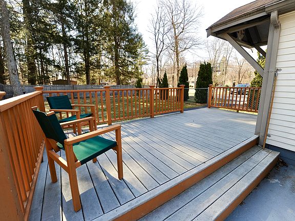 A Cozy Ranch that sits on .74 acres of land has 2 nicely sized bedrooms , 1 full bath, hard wood floors in living room with a pellet stove and 4 zones of forced hot water base board heat by oil. House has been well maintained and is in move in ready condition. Master bedroom has a large walk in closet. There is a trek deck on the side of the home and patio that overlooks the large lot of land this home sits on. BACK ON MARKET prior to any home inspection