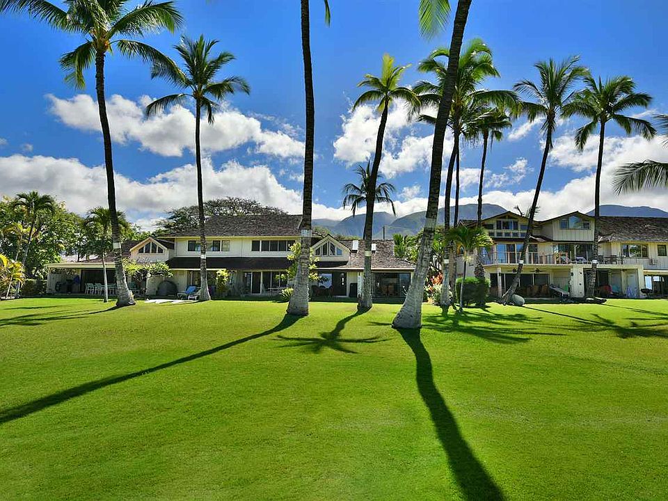 Oceanfront two story two bedrooms at the south end of Puamana. Beautiful stretch of grassy lawn in front and open wide views of the ocean and beach. Designer decorated and being sold fully furnished for a turn key vacation rental. This unit provides the ultimate beach house living and all the amenities that Puamana has to offer, three pools, gated, clubhouse, tennis courts. Such a wonderful community for full time residence or part time vacation rental. Come get your piece of Oceanfront in West Maui!