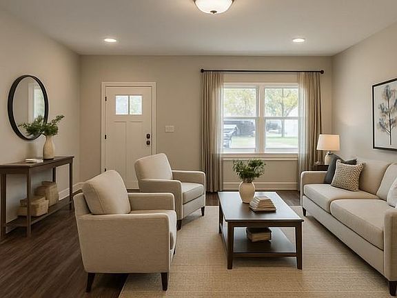 Brand New Construction – Built with You in Mind! This stunning home features an open, split floorplan perfect for entertaining and comfortable everyday living. The spacious living room welcomes you with abundant natural light, flowing seamlessly into the large kitchen with bright white cabinets, tile backsplash, eat-at island, stainless steel appliances, and plenty of recessed lighting. A large laundry room with extra closet space and pantry adds convenience. The primary suite boasts a walk-in closet and a luxurious bathroom with quartz countertops, LVP flooring, walk-in shower, and striking black hardware. Additional bedrooms are generously sized with double closets. Enjoy relaxing on the rocking-chair front porch or take advantage of the large driveway for easy parking.