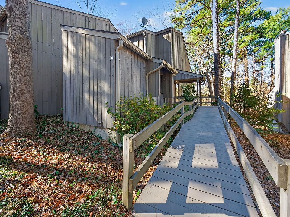 Beautifully updated end-unit Village West townhome offering 3 bedrooms & 3 full baths (one on the main level, two upstairs). Features include hardwood floors, an eat-in kitchen plus separate dining area, lots of storage & a large deck overlooking peaceful wooded views. Recent upgrades: new soft-close kitchen cabinets & drawers, granite counters, new appliances, fresh interior paint, and new bath vanities, fixtures and lighting. Each bedroom has its own full bath, w/ the primary suite offering dual closets. Washer & dryer convey. Located close to the community clubhouse, pool, dog park, tennis court and basketball, with easy access to Umstead Park trails & the Bolin Creek Greenway. In the Chapel Hill/Carrboro school district, it's just 1.5 miles to UNC—bike to campus or catch the free bus right down the street. A quiet, natural setting w/ wooded views all around. More-see photos & Pvt Remarks.