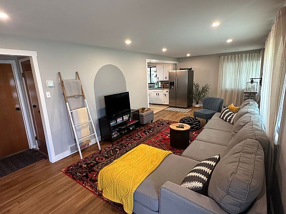 This warm and inviting home features comfortable furnishings, thoughtful modern updates, and original hardwood floors throughout. It offers four full bedrooms, two full bathrooms (one recently renovated!) plus a finished basement, dedicated laundry room, and plenty of space for storage. The kitchen is equipped with a new stainless-steel gas range and a refrigerator with a built-in water dispenser, and the washer and dryer were purchased in 2025. Outside, enjoy two separate patio areas perfect for relaxing or entertaining.