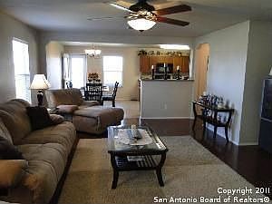 GREAT BEGINNINGS! Wonderful 3 Bedrm, 2 Bath Brick home in Kensington Ranch-Selma. Open Floorplan w/2 Living areas, Wood Laminate Floors in Living,Study & Hallways, Tile Floors in Entry, Kitchen, Breakfast & Bath areas. Master Suite w/Separate Tub/Shower, Dbl Vanity & Walk in Closet. Upgraded Light Fixtures, Master & Hall Baths have Crown Molding. Storm Door on back door, Covered Back Patio w/extended Rock Porch, Landscaped yard, Sprinkler Sys, backyard backs up to Farm/Ranch. Close to Randolph AFB & Ft. SamBrokered And Advertised By: RE/MAX AccessListing Agent: Nadine Berger