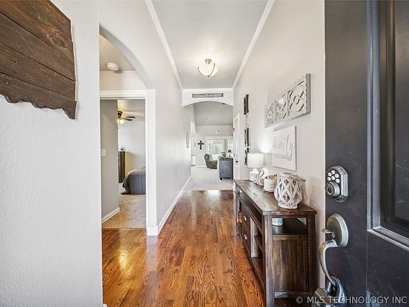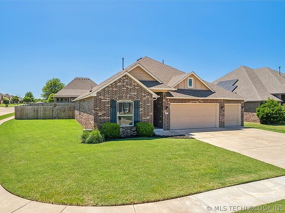 Coming Soon. No Showings or Offers until 6/7/24. Immaculate and move in ready home perfectly situated on a corner cul-de-sac lot in highly desired Bel-Lago! This open and split floorplan boasts many custom upgrades. When you first walk in this beautiful home you can feel how this one sets itself apart from the rest! Beautiful hardwood entry. Vaulted living with corner fireplace opens to kitchen and spacious breakfast nook with windows overlooking back yard. Kitchen has large corner pantry, beautiful wood stained custom cabinets, stainless steel appliances, & granite countertops with large island. Primary suite has private bath with oversized tiled shower, large whirlpool tub, and double sinks. Mudroom directly off of laundry room. Oversized 3-car garage. Recent updates include new paint throughout(2023), new hot water tank(2021), and new A/C condenser(2022). Full brick exterior. Large covered and extended patio opens up to spacious back yard with newer full privacy fence. Quiet, friendly neighborhood out of the city, with close proximity to the Creek Turnpike for an easy commute to just about anywhere you want to be.