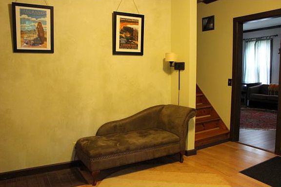 This colorful three bedroom, one bath city home has been thoroughly refreshed over the last few years. Some improvement include new Hardieboard siding, windows, high efficiency furnace, and fully insulated. Bright, sunny rooms, with an open floor plan. Curl up by the pretty soapstone wood stove and choose a volume from the built-in bookcases. In summer, head out to the flagstone terrace in the rear to relax or to tend your raised garden beds. Close to the Commons, Wegmans, Gimme, and all things down town!