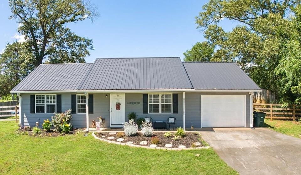 Welcome to this adorable ranch home for sale in Calhoun, GA! Recently updated throughout, this home features fresh exterior and interior paint, new flooring, and metal roof, offering both style and peace of mind. The bright, open floorplan creates a welcoming atmosphere that’s perfect for everyday living and entertaining. You'll find three spacious bedrooms, including a master suite complete with a walk-in closet and private bath. The home also includes a convenient one-car garage with kitchen-level entry, making grocery runs a breeze. A large laundry/mud room offers additional storage and functionality. Step outside to a private, fenced backyard—ideal for cookouts, gatherings, or giving your dogs room to play. This charming home combines comfort, convenience, and value in a great location. Don’t miss out!