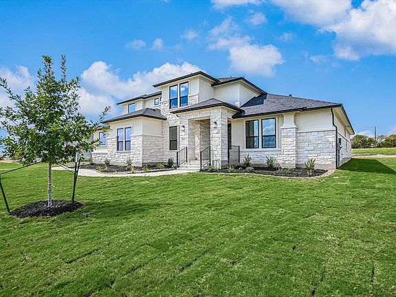 New construction home in the new Scofield Farms Estates community of Georgetown less than 10 minutes from Costco and just 15 minutes from Georgetown town square! 7% flex incentive! You could afford up to $100,000 more home than if you bought a resale—without raising your monthly payment. That means more space, more upgrades, and more of what you love. See Sales Manager for details. One-acre homesite, 1.5 story, 5 bedroom, 5 bath, with study, game room and media room, 3-car side-facing garage. Spacious open floor plan with quartz-topped kitchen island, upper cabinets to 10' with glass fronts and puck lighting, farmhouse sink, double ovens, microwave drawer, gas cooktop. Features 12' ceiling in main living area, downstairs primary bedroom with spa-like en-suite with large walk-through shower, double vanities, freestanding tub and two walk-in closets. Upstairs bedroom, full bath, large game room and separate media room. Outdoor extended patio with built-in kitchen with gas grill, sink and space for fridge.