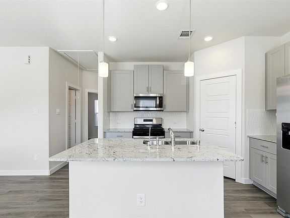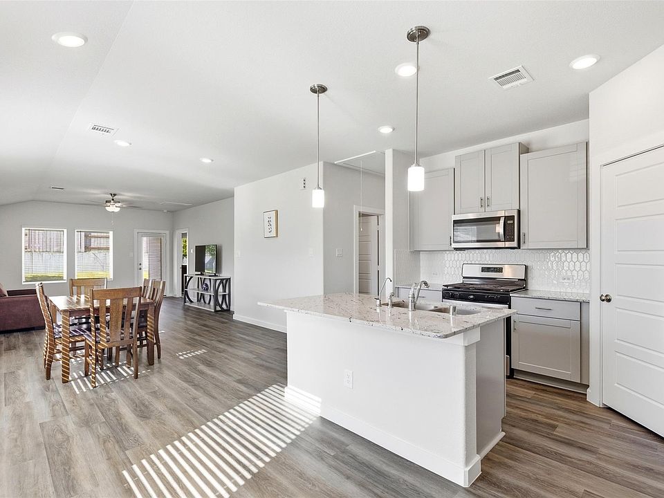 Welcome to this sleek like-new, energy-efficient home designed with modern living in mind. Located on a oversized corner lot, this home offers 3 beds, 2 full baths and great open concept floor plan. The private primary suite includes dual sinks and a spacious walk-in closet, offering both comfort and functionality. The modern Interior finishes feature pebble cabinetry, white and grey granite countertops, durable EVP flooring, and new carpet for a clean, contemporary look. Built with advanced energy-efficient features, this home delivers lower utility costs, improved comfort, and lasting value. A limited transferable builder (Meritage) home warranty is included, providing peace of mind and confidence in your investment.
