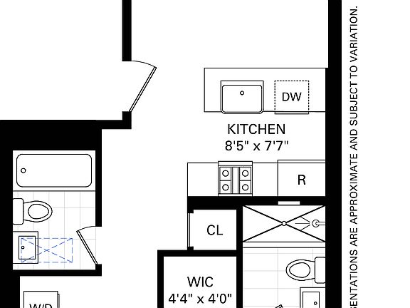 Enter through the welcoming foyer and into the spacious living and dining area that boasts sunny eastern exposures and is flooded with natural sunlight throughout the day. Appreciate the convenience of having two entry / exit ways into the apartment. Carry on into the gourmet chef's kitchen that features a breakfast bar and is equipped with brand new appliances including an oven with a 5-burner cooktop and built-in microwave by Haier, full-size dishwasher by GE, and a refrigerator-freezer by Liebherr. Additional kitchen features include custom cabinetry, white lacquer countertops, and a large farm sink for added luxury. Off the living room is a room that can be utilized as a home office or nursery, as well as a coat closet located in the hall.