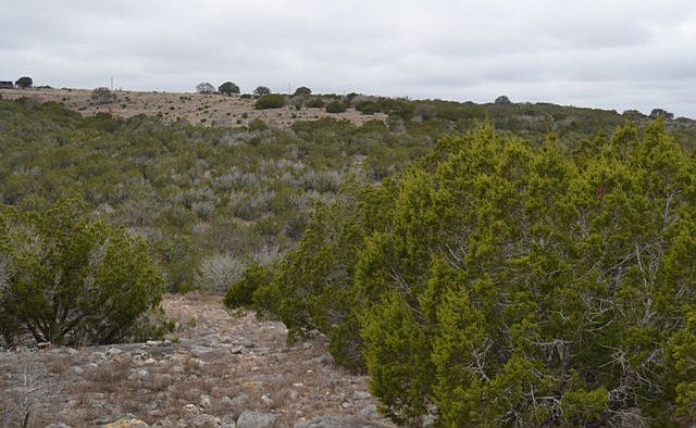 Located east of Rocksprings. Easy access less than 2 miles off Hwy41. End of the road property. Campsite on top with spectacular views. Gentle rolling terrain with seasonal creek bed running along western boundary. Good area for whitetail, axis, turkey, hog. (listing #44)