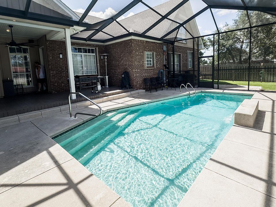 Nestled in the community of Lynn Haven, Florida, this stunning two-story home offers an exceptional living experience. Built in 2007, the property spans 3000 sq ft and features 5 bedrooms (3 spacious bedrooms on the first floor and 2 bedrooms upstairs) and 3.5 beautifully appointed bathrooms. The interior is bathed in natural light, highlighting the elegant granite countertops that adorn the kitchen. The heart of the home is the open-concept living area, perfect for both family gatherings and entertaining guests. Convenient front office, along with a separate dining area that adjoins the kitchen. Must see water views from the second level. Step outside to your private screened-in pool, an oasis for relaxation and recreation. The property also includes an oversized two-car garage, providing secure parking and additional storage. An added bonus is the home generator, Outdoor building, complete with lighting and AC, offering a versatile space for hobbies and a workshop. Complete home Culligan water filtration system offers fresh clean water. Conveniently located, this home is just minutes away from local shops, restaurants, grocery stores, and boat ramps, making it easy to enjoy all that Lynn Haven has to offer.