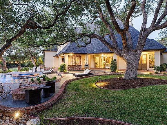 Stylish backsplashWelcoming fireplacePrivate poolIn-ground hot tubOutdoor dining areaKitchen barFour garage spaces