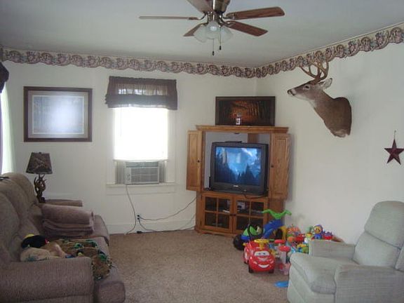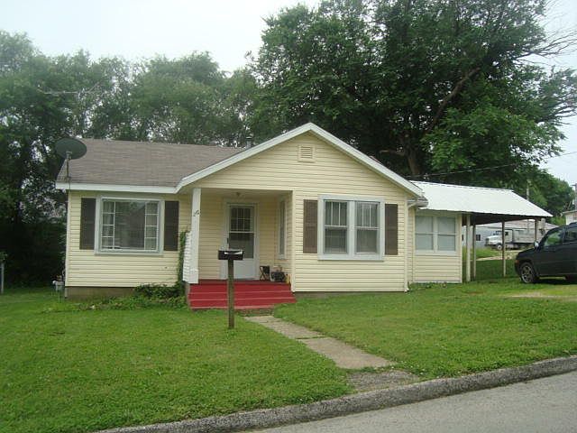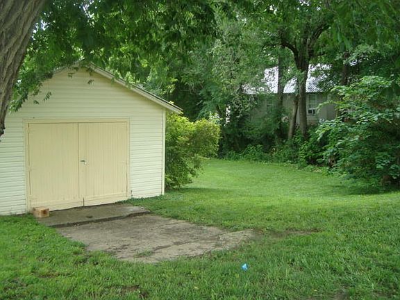 Cute well kept home on Large corner lot! Neat and clean small home with total of 936 sq.ft. easy to heat and cool. Home features 2 beds, 1 full bath, large living and large kitchen w/inset Dining area. Utility room off kitchen with outside entry. Large lot offers 106x114.75 of room and has great place for garden with outside water, play area, and wet weather creek at back boundary. One car detached garage or storage building w/concrete. Vinyl siding and roof are only 5 years old! Newer natural gas warm morning stove and window air that stays. Partial basement w/outside entry that is clean and would make great shelter. Great place and great price at 42,500.00