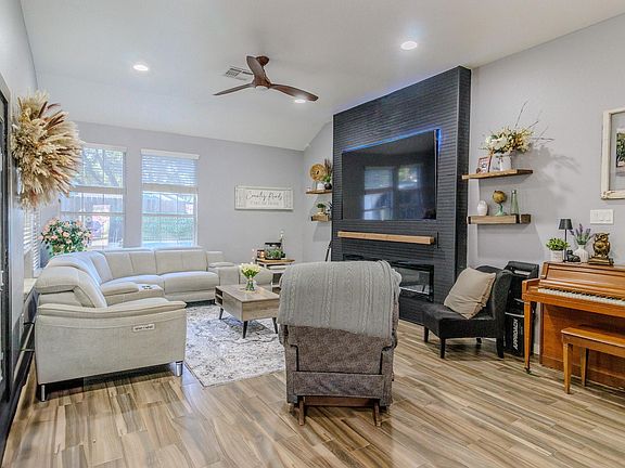 ADORABLE 3/2/2 IN DPISD. OPEN FLOOR PLAN. CERAMIC TILE.. KITCHEN OPEN TO LIVING AREA. HIGH CEILINGS WITH BUILT IN FLOOR TO CEILING ELECTRIC FIREPLACE. LARGE PRIMARY SUITE WITH PRIVATE BATH. LARGE SHOWER AND DOUBLE SINKS. GOOD SIZED SECONDARY BEDROOMS. GUEST BATH WITH TUB.SCREENED IN BACK PATIO WITH CEILING FANS. BACKYARD WITH SHE-SHED AND FISH POND. THIS HOME IS A MUST SEE!