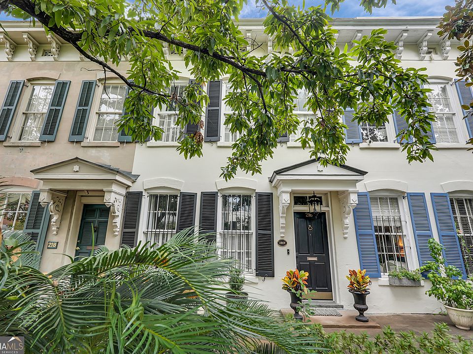 Originally built in 1869 for John Henry Heitmann, this exquisitely preserved 2-bedroom, 2.5-bath townhome presents a rare opportunity to own a distinguished piece of Savannah's architectural heritage. Ideally situated just steps from Forsyth Park in the heart of the Landmark Historic District, the residence seamlessly blends timeless elegance with refined modern updates. Rich in original detail, the interior showcases original wood floors, plantation shutters, intricate crown molding, and four decorative fireplaces-two of which are gas-plumbed-offering both visual charm and functional potential.The thoughtfully renovated kitchen is both sophisticated and inviting, featuring distinctive grey brick flooring, expansive windows, and French doors that open to a private, walled courtyard. A custom-designed bar nook adds a touch of modern luxury and creates a stylish space for entertaining. Outside, the courtyard offers a serene retreat, complete with arched wooden gates, a tranquil water feature, working vintage lamppost and a built-in storage shed-perfect for relaxing mornings or evening gatherings. Upstairs, two generously sized en suite bedrooms provide luxurious comfort and privacy. Offered mostly furnished, this turnkey residence is ideal as a full-time home, charming pied-a-terre, or premium investment property. Enjoy easy access to Savannah's finest dining, boutique shopping, art galleries, and cultural landmarks-all within one of the city's most coveted neighborhoods. Discerning buyers will appreciate the rare combination of historic integrity, modern convenience, and premier location.