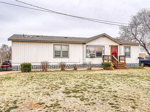 Very nice 3 bed, 2 bath home on 0.75 acre. Living Room, Kitchen & Dining Room are open floor plan. Kitchen features refrigerator, dishwasher, electric stove with vented hood, lots of storage cabinets & an eat-in snack bar. Split floor plan with the Primary Bedroom on one side of the house & the other 2 bedrooms on the opposite side of the house. The Primary Bedroom is large & has an adjoining office with built in shelves & desk. The Primary Bathroom features a double vanity, large bathtub & a separate walk-in shower. Designated Laundry Room. The following will stay with the property: all kitchen appliances, washer, dryer, all bedroom furniture, all living room furniture, kitchen table & chairs. The TV will not stay with the house. The property is approx. 150' x 300'. The back area is very large & fenced. This would be a good place for horses or other livestock or a nice garden area. If you are looking for a nice place in town with lots of space this is it.
