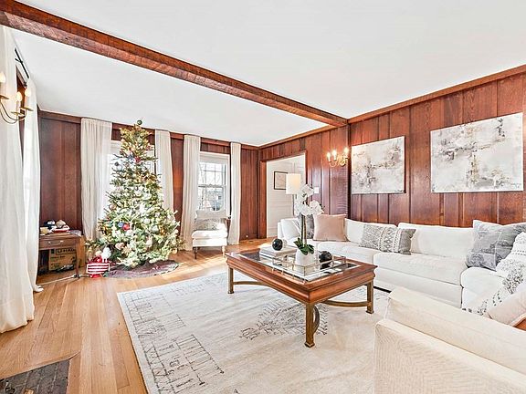 This sun-drenched Colonial in fantastic Newton Corner locale has been beautifully updated with 2022 new kitchen and updated baths, exterior painting, hardwood floor refinishing, and finish work in the basement. 5 bedrooms, 3.5 baths, 2-car garage. The first floor features a gracious front entryway with mudroom vestibule, light and bright fireplaced front-to-back living room with beamed ceilings and warm wood paneling, a large formal dining room, powder room, cozy office/study with built-ins, and 2022 renovated white country kitchen with open shelves, white cabinetry, butcher block and quartz countertops, and luminous breakfast area. The second floor features a spacious primary bedroom suite and an option to create a 3rd en suite bathroom in a private wing for the 4th bedroom. The third floor offers the 5th bedroom, another full bath. Mini-splits for A/C, slate roof. Drive right up to the garage or back door, and enter the house from the 2-car garage, through the mudroom/breezeway.