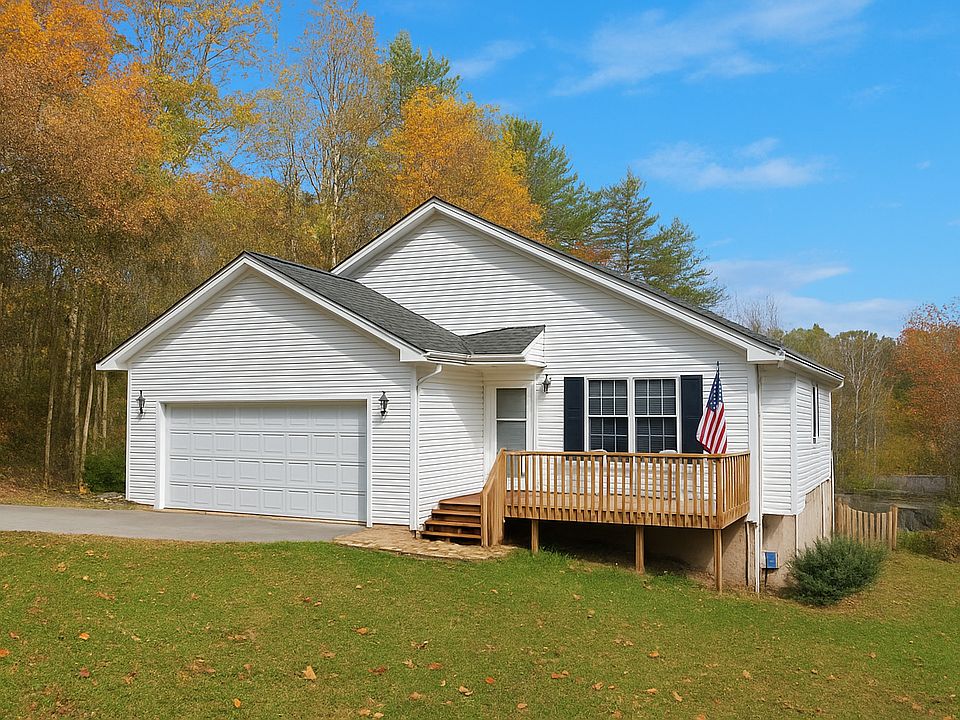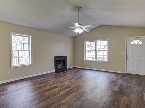 This home is perfect for entertaining! The main level has a spacious living room with a gas log fireplace and vaulted ceiling, a dining area, and a bright kitchen with new granite countertops, stainless appliances, and access to the upper deck with beautiful views.