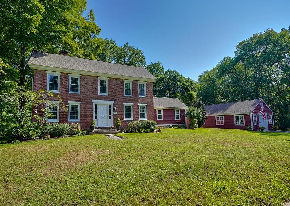 BACK ON THE MARKET. BUYER'S WORK HISTORY COULD NOT BE VERIFIED FOR MORTGAGE. Eye-catching c.1800 brick Colonial in Woodville with many updates. Terrific layout w/open living plan, updated kitchen with s/s & granite, home office/den, and 1st floor master BR option. 2 add'l BRs & full bath on 2nd floor. Finished attic offers many options. Recent septic, young roof, replacement windows, updated electric services, 5 zones air conditioning, closet organizers. Detached, 3-story barn includes 2-car garage & storage in the basement. Formerly used as an antique store, the heated & air conditioned 900+ sq ft main-level offers endless possibilities. Separate gas & electric meters for barn. Plenty of parking. Beautiful lot w/sensational landscaping & ambiance expands living space outdoors. Less than ½ mile from Whitehall State Park and quick access to downtown Hopkinton & shopping. Convenient commuter location. Come see the possibilities w/this lovely property.