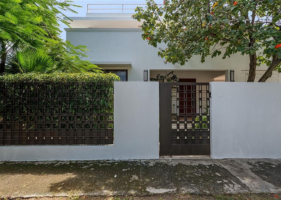 A Zen paradise in the gated beach community of Santa Teresita, San Juan. Perched in a coveted location with sweeping views of Ocean Park Beach and El Yunque, this 4-bedroom, 4-bathroom residence on Calle General Patton is an extremely rare find that seamlessly combines modern design and sustainability. From its soaring 12-foot ceilings and hurricane-proof windows, to its state-of-the-art solar panel system, every detail has been thoughtfully curated to provide sleek beauty and peace of mind. Its abundance of natural light feels open and inviting. The kitchen is designed for both function and sophistication, featuring rich wood cabinetry, stainless-steel appliances including a dishwasher, a Monogram wine fridge, and the capability to install a gas-powered stove. The primary suite includes a spacious en-suite bathroom, while the additional bedrooms offer flexibility for guests, family, or to create an office space. Ample storage throughout the home enhances its practicality. For added security and efficiency, the home is equipped with a gas generator, a Sol-Ark solar panel system, and three Revolt band batteries to store energy, ensuring ultimate comfort. The outdoor living space is truly an entertainer’s dream, highlighted by a marble-top patio with a built-in grill, kitchen sink and full outdoor bathroom. Yet more entertaining space, or potential living space, is available upstairs. The rooftop offers incredible potential to build an additional level and expand the panoramic views of the ocean and El Yunque mountains. The property is equipped with a sub pump for added protection, yet it remains safely outside of a flood zone on a non-flooding street. This home presents a rare chance to live or invest in a property that blends luxury finishes, sustainable energy solutions, and unmatched potential in a prime beach location. The property is being sold with professional remodeling plans, giving buyers the opportunity to further customize and elevate the space to their vision. Mere steps from the beach and the newly renovated Barbosa Park, featuring full track, soccer fields, work out stations, basketball, tennis, and pickleball courts, this location is perfect for fitness and water sports enthusiasts. Near the trendiest bars and restaurants on Calle Loiza, this location truly offers something for everyone. Do not miss this opportunity, call for more information.