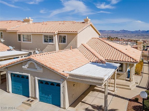 Pristine Spinnaker Bay townhome with mountain & city views! Highly upgraded split floor plan offers the perfect layout for your enjoyment. The kitchen has granite counter tops, a breakfast bar, breakfast nook and all appliances, promising effortless meal preparation. Custom tile flooring throughout! The living room boasts vaulted ceilings and features a gas fireplace. French doors open to reveal breathtaking views of the majestic east mountains, giving you the feeling of being "on top of the world". The main bedroom has a walk in closet with its ensuite bathroom. Water softener enhances daily living, while a finished garage and carport provide parking convenience. Moreover, the community amenities, include a pool and spa, that offer relaxation and leisure right at your doorstep. This turnkey townhome presents a rare opportunity to enjoy luxurious living in a coveted location. Come see how this townhome sets the bar for Laughlin living. Move in ready.