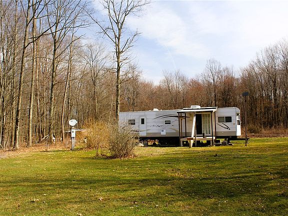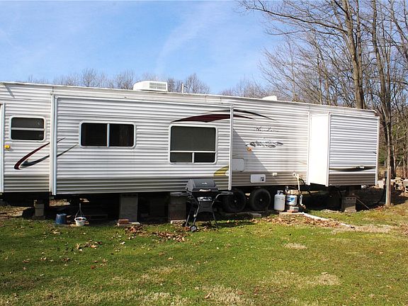 These 10 acres of land in the country have a lot to offer with a 40 ft RV, well, septic system, electric and 2 sheds for storage. Several fruit trees are planted on the property. It would make a great hunting camp as there is a nice deer stand in the woods. Also, you could fish at French Creek, Lake Willham or Pymatuning Lake. The utilities are there for you to build a home.
