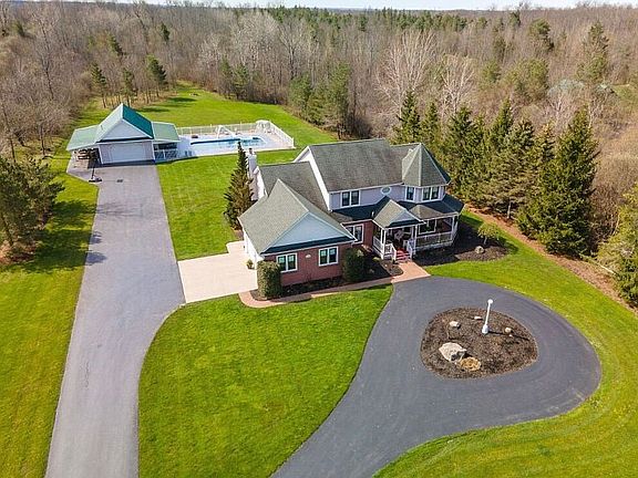 One of a kind home & property… Family living at its best, this spacious 3121 sq ft four bedroom 2 1/2 bath home sits on 7 acres in the desirable Elma community that ranks Iroquois School District highly… with an abundance of privacy yet accessibility and convenience to shopping, medical corridor, Highmark stadium and major thoroughfares. Recent updates to the home include spacious kitchen with custom cabinets and granite island featuring 3 pop up electrical outlets, dual zone wine frig and microwave drawer on magnificent island. JennAir custom cabinet refrigerator/ freezer. Master suite recently updated includes radiant heat in bedroom, bathroom and closet and includes custom cabinets with granite and private deck. Second bathroom upstairs recently updated with new cabinetry and bath/shower. Tankless hot water system, 9’ ceilings throughout all three levels, as well as vaulted and tray ceilings. Plenteousness of closet and storage space throughout home. 1409 sq ft of finished basement area, with second entrance to/from garage. Composite Deck installed on both back decks in 2020. Back deck features a 22x16 retractable awning and 5-person hot tub. 24x40 Heated Pole barn, 2 floors... leads to a covered pool Oasis that includes a 20x40 salt inground pool and bathroom/changing area for ultra-convenience. Property has a 30' oval pond. Low Elma Taxes $8968 for 2021. Click link to see drone video https://www.youtube.com/watch?v=w_D4rCDkByM