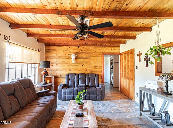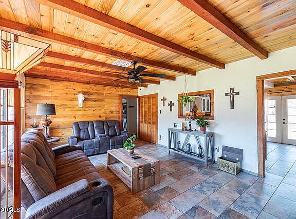 Tucked away in the heart of Arizona's wine country, this meticulously maintained home offers privacy, natural beauty and convenience. The east-facing screened porch welcomes stunning sunrises, while native landscaping, a raised garden and frequent hummingbirds create a serene setting just minutes from wineries, the Verde River and town. Inside, the ranch-rustic kitchen with granite countertops and island opens to a spacious dining area and inviting living room. Updated bathrooms, a pellet stove and a free-standing wood stove add warmth throughout. With a newer roof, HVAC, a workshop, two storage sheds and room for horses or other animals, this move-in ready property blends country living with modern ease. Make it yours today!
