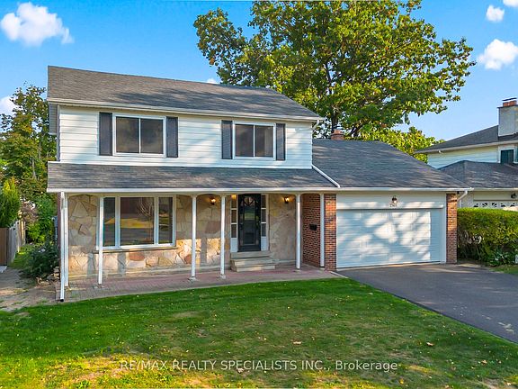 Fantastic 4 bedroom home approximately 1900 square feet nestled on a premium 60 by 125 foot lot and located on one of the most sought after streets in Sheridan Homelands. Spacious living/dining room with hardwood floors. Family size kitchen area with breakfast area. Main floor family room with wood burning fireplace and walk-out to deck. Hardwood floors throughout all upper level bedrooms and a main 4 piece bathroom. Primary bedroom retreat with double closet and rough-in 3 piece en-suite. Finished basement with large recreation area with pool table, laundry room, and lots of storage space. Great curb appeal with stone front, new garage door (2024), new roof (2013), upgraded lower eavestroughs with leaf guards, and new windows (2015). Fully fenced yard with landscaped gardens, large deck, and garden shed. Conveniently located close to schools, parks, trails, highways, shopping, restaurants, University of Toronto (UTM), and Clarkson Go Station.